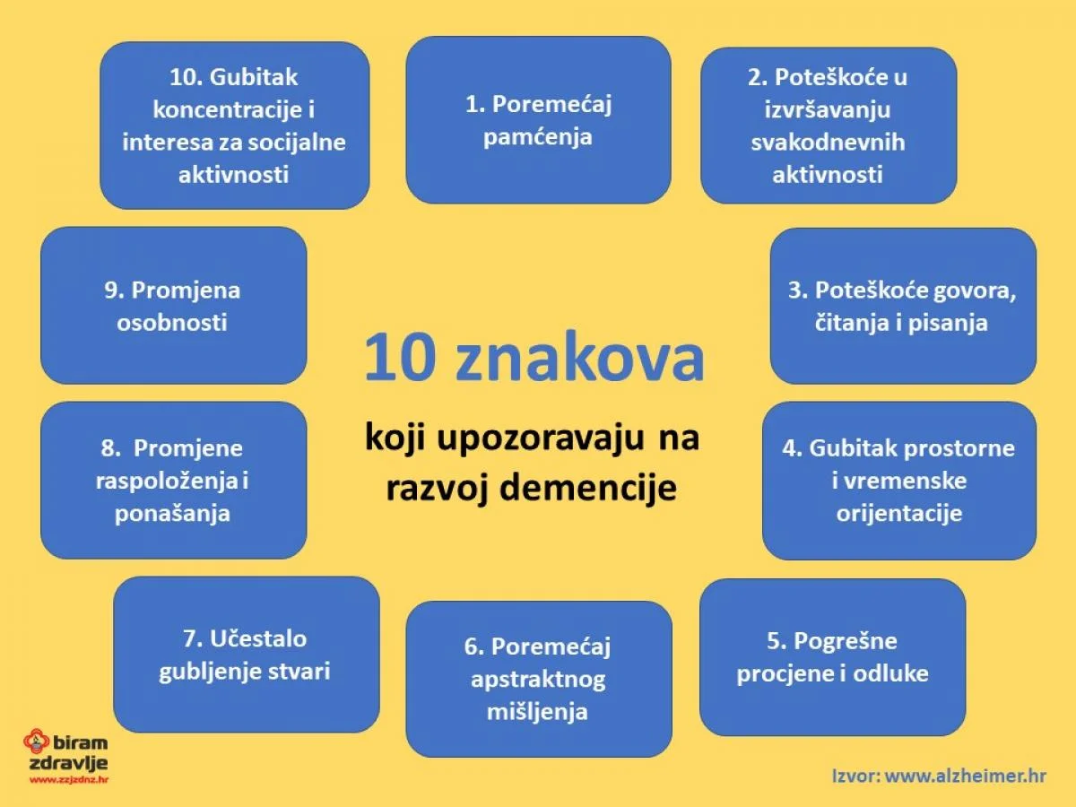 1. Poremećaj pamćenja: razvija se postupno, a najviše se zaboravljaju događaji koji su se nedavno dogodili.